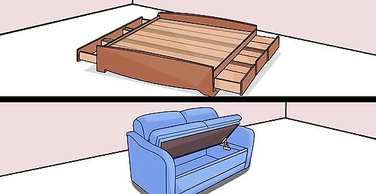 Choose furniture with built-in storage. One of the easiest ways to put your furniture to work is to select pieces with built-in storage. Bed frames, ottomans, and even sofas can all be purchased with built-in storage for anything from clothes to books, or anything else you may own. Consider whether an item’s built-in storage fits your needs. For example, if you are looking for more space for your clothing, a small ottoman may not be the best solution. Instead, opt for a platform bed with storage drawers underneath.