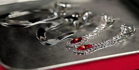 Store earrings separately in soft bags or a covered jewelry box. Earrings and other types of jewelry will last longer if stored properly. Protect your earrings from dust by storing them in breathable cotton bags or a covered jewelry box. Keep them separated from one another—either by partitions in the box or in individual bags—to prevent scratches on the metals or gemstones.