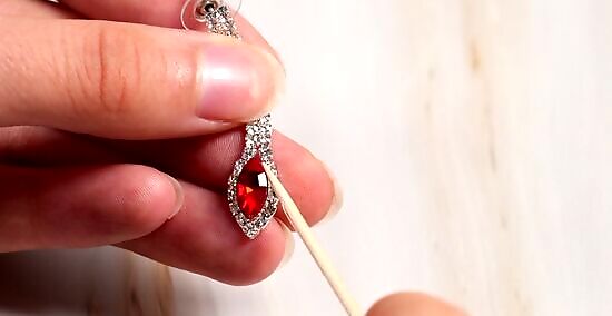 Remove dirt from cut gem earrings with a toothpick. Dirt can accumulate in the corners of cut stone earrings, making them difficult to wipe off. Use a shaved matchstick or a toothpick to pick it out instead, removing the dirt slowly and carefully. You can also try wrapping the toothpick in a tissue or cloth to create a softer tip, but it may not be as effective in getting into tighter spaces.
