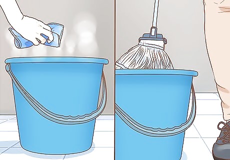Soak a clean mop or small cloth in the cleaner and wring it out. You should make sure that your mop or cloth is submerged in the liquid, and then wring it out so that it’s damp. You don’t need your cloth or mop to be soaking wet to perform a good deep cleaning. If your mop or cloth is dripping with cleaner, wring it out further.