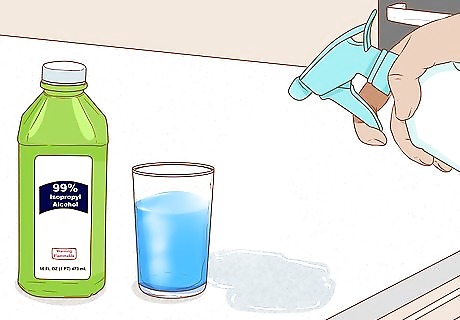 Spray down your granite with a mixture of isopropyl alcohol and water. After your granite surface has been cleaned, fill an empty spray bottle halfway with isopropyl alcohol and fill the other half with water. Shake it a little bit in your hand to make sure that the alcohol and water mix evenly. Cover the entire surface with your spray and let it rest for 3-5 minutes. Dry it with a microfiber cloth or soft rag. This will make your granite shine like new, and has the added benefit of disinfecting it.