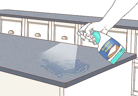 Check to make sure that your granite is sealed before doing anything else. Most granite is sealed after it is installed, but it needs to be resealed every once in a while. To see if your granite needs to be resealed, pour a small amount of water onto its surface. If the water beads up into small balls, your granite is properly sealed. If it doesn't, your granite is unsealed, and you should avoid cleaning it– the water will seep into the porous rock and potentially damage it. Reseal your granite if it needs to be resealed by covering the granite in a specialized granite sealant and wiping away excess sealant after it rests. After multiple sealant applications, your granite will be safe to clean. As a general rule, it's a good idea to seal your granite about once per year to make sure that the stone doesn’t get damaged and maintains its color.