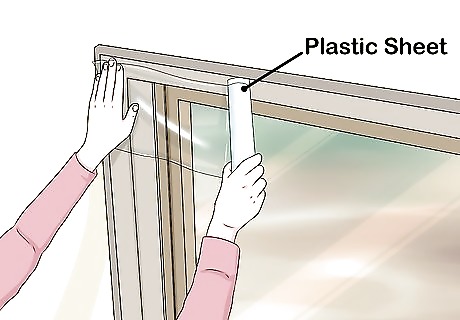 Protect the area on and around your home. Begin by making sure all doors and windows are closed. Secure them with tape if necessary. Put duct tape and plastic sheeting over outside light fixtures, vents, and electrical outlets. Move lawn furniture away from the home. Cover plants and shrubbery with plastic sheeting. Make sure kids and dogs are inside while you clean if you're using a pressure washer.