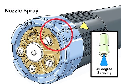 Choose a nozzle to pressure wash with. Nozzles are typically measured in degrees. The spray is stronger the lower you go in degrees. Choose a low setting if you aren't familiar with pressure washing. A 40-degree angle is good to start with. You can gradually work down to a 25-degree angle if the 40-degree nozzle isn't getting the job done.