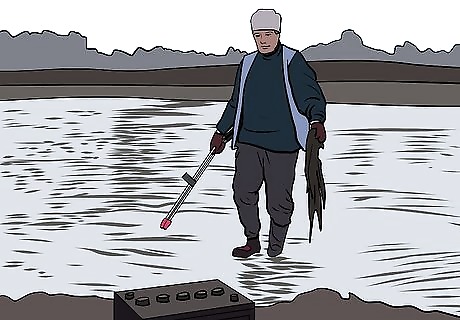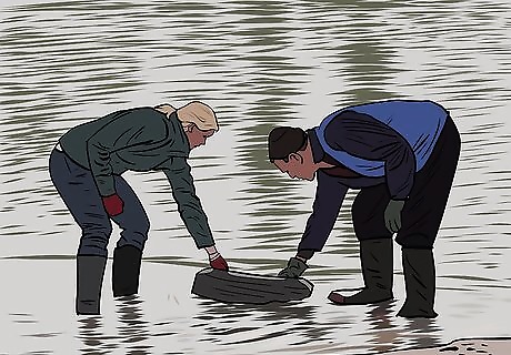 Keep safety in mind. There are several things to keep in mind in order to stay safe. Wear suitable clothes, boots, and work gloves. You should always have another person with you in case either of you need help. Don't enter water deeper than your knees, and be careful not to step into a drop off by taking small steps and feeling the bottom with your foot before placing your full weight on it. Practice good lifting technique by lifting with your knees, not your back. If an object is too heavy, get another person to help.