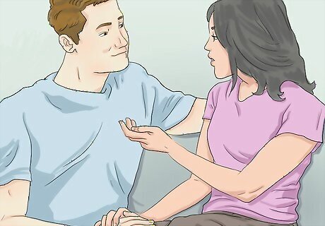Speak respectfully in a warm, friendly tone. The way you speak can be just as important as what you are saying. When communicating with someone you care about, you want to convey compassion in your tone. Beyond your tone, also be mindful of non-verbal cues that may send a mixed message. You do not want to show signs that you are not open to talking. Example of cues that may send the wrong message would be standing with your arms folded so you appear closed off, shouting or even a nervous laugh that may be interpreted as not being sincere.