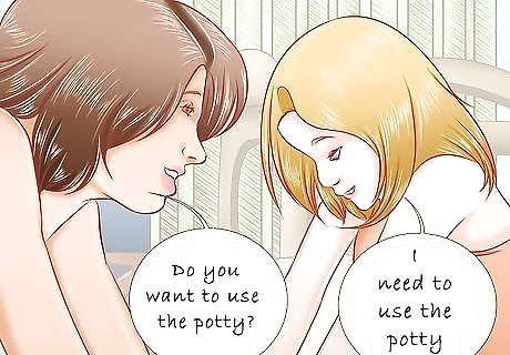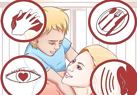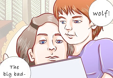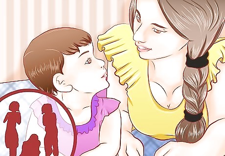 Let your child hear people talking. Talk to your child, have conversations nearby your child, and encourage other family members to do the same. Hearing more words will help your child learn listening skills and vocabulary, and can speed up your child's linguistic abilities.