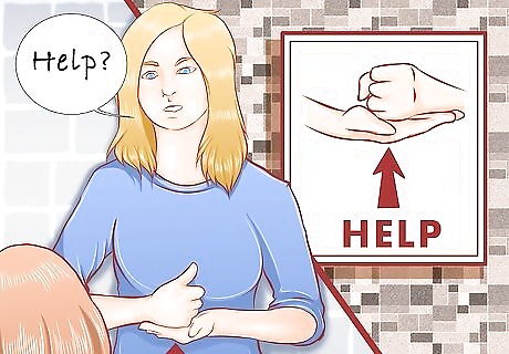 Help them to communicate the need for your help. Use a photo or hand sign for help which is one hand held out, palm up place fist on the flat out hand with thumb up. Take the second hand and lift it off the first saying "Help?"