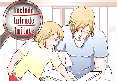 Use the 3 "I's" to encourage communication between your child and you. Include your child's interest. Intrude in what they are doing (gently, of course!). If your child likes to sit alone studying their dolls, cars, or books, try playing next to them. You don't need to get a dialogue going; silent interaction or peaceful parallel play also work. Imitate. If they are spinning or sitting looking through a book, then sit or stand next to them and do what they are doing. See if they stop what they are doing to look at your book. If they come over start talking about the book you are reading and the pictures. If they don't, then they are probably just enjoying your company.