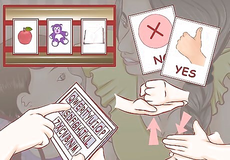 Find a type of AAC for a child who cannot speak yet. The earlier your child can begin communicating, the better they will be able to express wants and needs (and the less frustrated they'll get). AAC is usually a stepping stone to verbal speech, although some autistic people remain nonverbal or partially verbal into adulthood. Picture Exchange Communication Systems Picture/word boards Typing Baby Sign (e.g. the Baby Einstein video "baby's first signs")