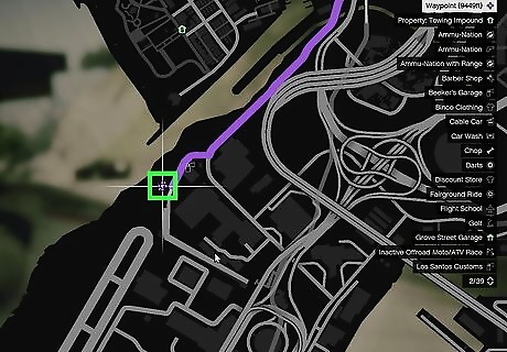 Follow checkpoints. Once in the water, follow the yellow checkpoints on the minimap in the bottom left-hand corner. You will eventually swim back onto shore, where a rack of bikes awaits you.