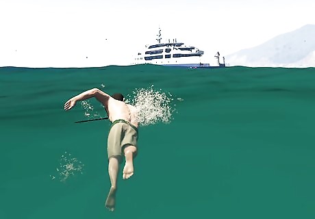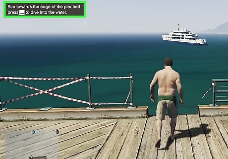 Dive into the water. Approach the end of the pier, and dive into the water by pressing the button prompt that appears on screen. You can swim by pressing the toggle forward, and swim faster by repeatedly tapping the X button (PS3), A button (Xbox 360), or Shift Key (PC).