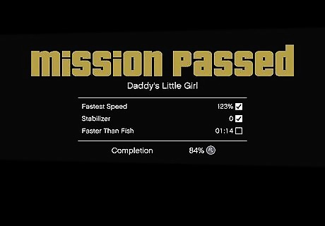Complete the mission. By now, you will have lost your attackers. Continue back out into the ocean, and head towards the yellow dot on the map to complete the mission. After completing “Daddy's Little Girl”, you will receive a notification that triathlons are now available for your character.