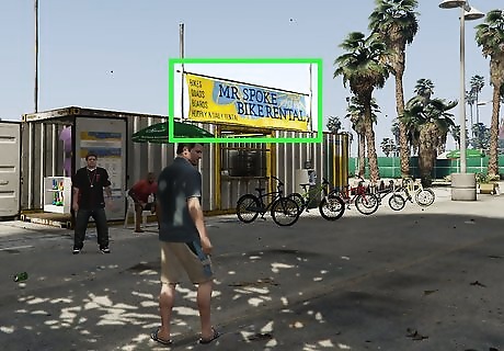 Go to the Bike Rental area. Once you arrive at Vespucci beach, exit the car and approach the yellow dot on the map, which leads to the Bike Rental area. After approaching the area, you and Jimmy will get on the bikes and begin to race.