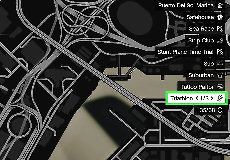 Open the game map. Unlike other sports, triathlons can be completed regardless of the time of day, so if you're wanting to try the sport out, open the game map by pressing the Start button (PS3 & Xbox 360) or M key (PC).
