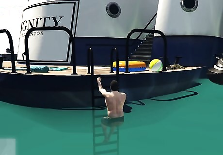 Climb onto the boat. Once you've reached the boat, climb onto the deck by toggling towards the ladder that extends into the water. Take the stairs on your right, and another cutscene will begin.
