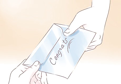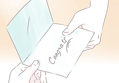 Send a gift. If the occasion is special enough to merit a gift, something thoughtful and not too expensive is usually the right way to go. Choose a gift that lets the person know you want to celebrate with them and send it with a note of congratulations. You can't go wrong with flowers, whether you want to mark a professional achievement or a personal landmark. Food items are also usually welcome. Pick a universal favorite, like chocolates or fresh fruit. A bottle of wine or good bourbon might be a good choice. For a high school or college graduate, a small amount of cash will probably be appreciated.
