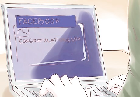 Spread the word. You can help spread the person's joy by telling other people the good news, so they can congratulate the person as well. Write a congratulatory post on Facebook, or get everyone in the office to sign a card. Before you decide to spread the word, just make sure the news is yours to share! Some people might prefer to keep good news private until they're ready to reveal it to more people.