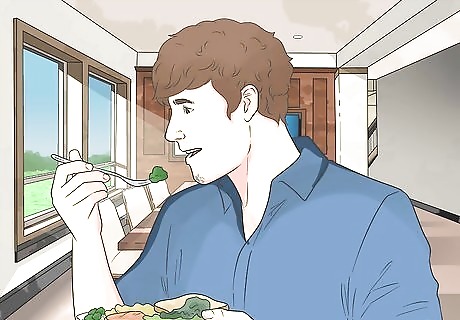 Practice healthy habits. Negative thinking and stress both reinforce one another. While negative thinking can create stress, other unhealthy living habits can contribute to the problem as well. Make an effort to eat fresh, nutritious food whenever possible, exercise regularly, and get plenty of sleep. You may find that exercise is actually a good way to distract your mind from negative thoughts. Avoid smoking, excessive drinking, or any other substance habits that put strain on your body.