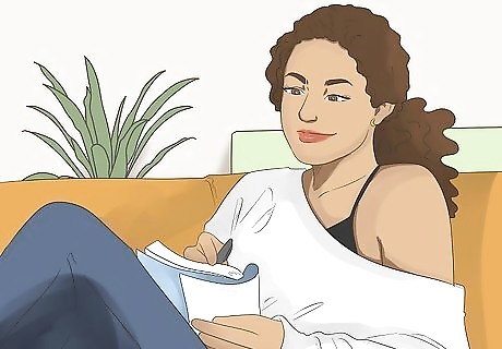 Decompress and relax in the evening. Find a quiet, comfortable place and set aside time to relax. Mentally review your day and identify five positive things you experienced. Say each positive thing out loud or write them down in a journal. You might also consider writing down things you're thankful for. In doing so, you're more likely to begin seeing the positive in things.