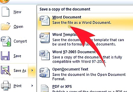 Save the file as a new Microsoft Word document. Use the Save-as method to save your file.