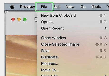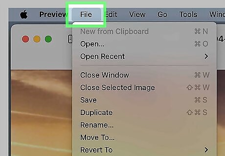 Click File. It's in the menu bar at the top of your screen.