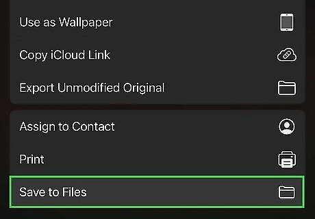 Tap Save to Files. It's near the bottom of the menu, next to an icon of a folder.