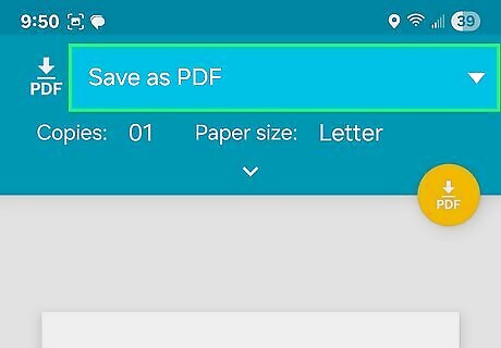 Change "Select a printer" to Save as PDF. You can tap it to change it.