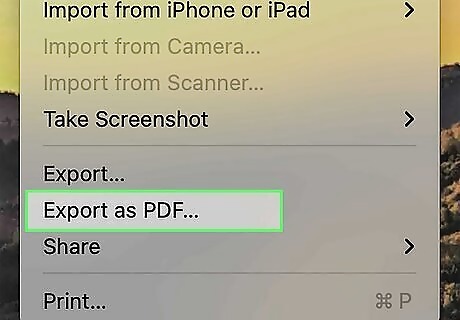 Open the file you want to convert in Preview. You can do this a few ways: Right-click the file in Finder and select Open With > Preview Open Preview, then press Cmd + O and select the file you want to convert. You can convert most files, including TIFF files and Photos (.jpg, .png, .bmp, and so on). You can also use other apps on your Mac the same way, like Messages, if you want to make those a PDF.