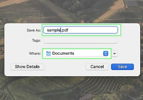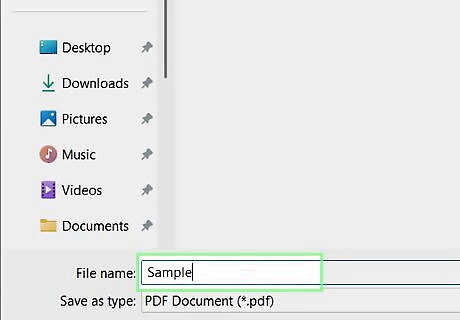 Enter a name for your document. In the "File name" field, type in whatever you want to name the PDF version of your document. Since you're creating a PDF version of the document, you can name the PDF the same thing as the original document and store it in the same location if you wish.