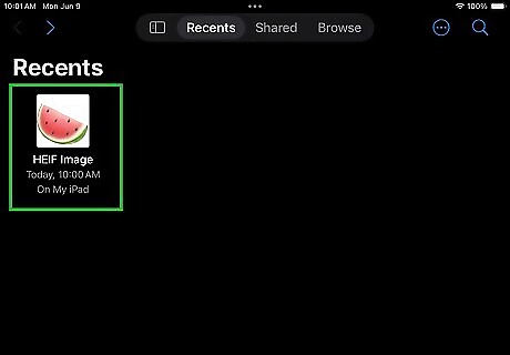 Open Photos and tap a photo that you want to convert. The Photos app looks like a multicolored pinwheel.