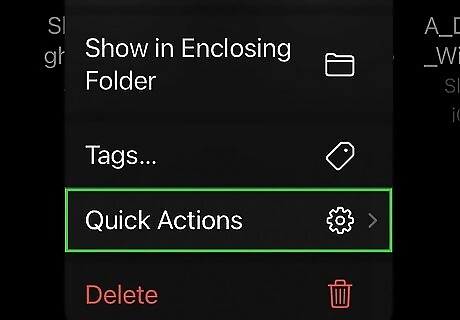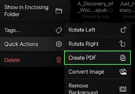 Tap Quick Actions and Create PDF. Tapping "Quick Actions" will expand the menu with more options. Once you tap Create PDF, a duplicate item will appear in Files at the same location with the "PDF" file format.