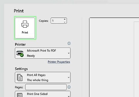 Open the "Print" menu. The fastest way to do this is usually by pressing Ctrl and P at the same time, but you might need to click File and then click Print in the resulting menu. Don't be alarmed if you don't have a printer attached to your computer—you're not actually going to print anything.