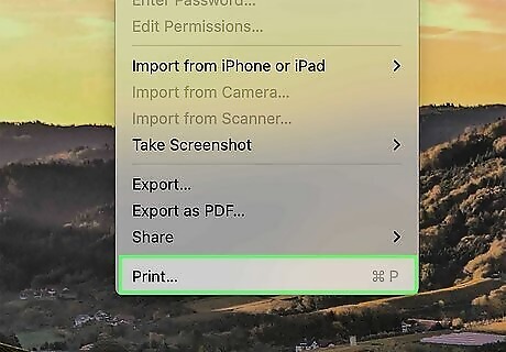 Click Print. This is in the drop-down menu. You can also press Cmd + P to print. Don't worry, you're not actually going to print anything!