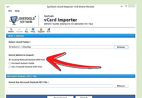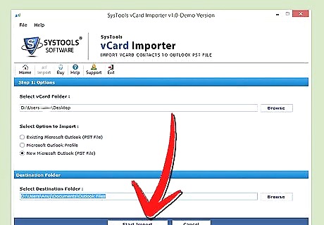 In "Select Option to Import" specify your choice based on your need : Existing Microsoft Outlook (PST) File. Select this if only one Outlook profile is configured in your Outlook Email Client.Convert Vcard Contacts to Microsoft Outlook Format Step 7Bullet1 Version 2.jpg Microsoft Outlook Profile. Select this option if multiple Profiles exists in Outlook Email Client.Convert Vcard Contacts to Microsoft Outlook Format Step 7Bullet2 Version 2.jpg New Microsoft Outlook (PST) File. Select this method only if you want to save the converted vCard contacts to location you specified and use that file when you desire.Convert Vcard Contacts to Microsoft Outlook Format Step 7Bullet3 Version 2.jpg