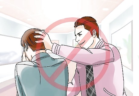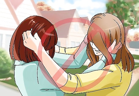 Say no to violence. Do not fight. It can get you injured and you may end up in trouble, too. If you find yourself in a fight, don't hit back. A lot of teachers and staff don't look too kindly on people who fight back. If you really need to, self-defend - push them away or use your hands to block, or use your legs. Say things like, “I don’t want to fight you. It won’t solve anything.” Or, you can take a more subtle approach by saying, “Fighting just isn’t my thing.”