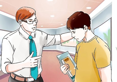 Consult with a school counselor. If you are open to it, speaking to a counselor at school can also be a helpful resource in solving the conflict between you and the person who bullies you. A school counselor can help you develop a plan to deal with the bullying, use conflict resolution to help solve the issue, or refer you to a licensed therapist. Ask one of your teachers for a pass to speak with your counselor. Or, go speak to a school counselor during a break between classes. You should then be able to get a pass back to class once you are done talking to the counselor. The counselor will keep your information a secret because information said to a counselor is considered confidential. The counselor may tell your parents or the principal to get additional help and support for you, but she will not tell other students or teachers anything you have said.
