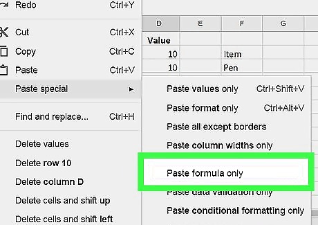 Select Paste Special. You can also right-click the cell you want to paste in and select Paste Special.