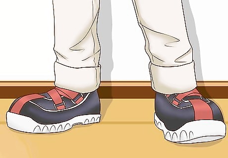 Start off with the most complex part of his outfit (probably the pants). They are composed of two parts. The first part is a regular pair of black pants. The second are actually beige cutoff pant legs that appear to be fastened to the black pants by several silver buttons. Think of a variation on those cowboy pants you see sometimes. Once you have the beige cutoff pants attached, you're ready to move on.