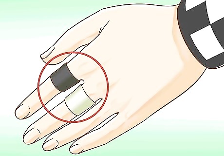 Make some cloth rings. He has two cloth "rings" on his left two fingers, the index and middle finger. These can easily be made out of some cloth.