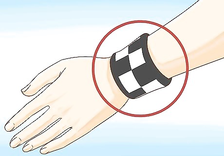 Find a wristband that has a black and white checkered pattern on it, or try to make one yourself. If you can find a black athletic wristband and sew in the white squares with white lining.