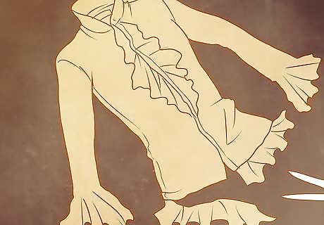 Make the outfit. The first thing you need is a ruffled tan shirt. It should preferably have a puffy collar. If you find a shirt with a ruffled collar and sleeves, but don't like some ruffles, you can cut them off. Save the ruffles for making the pants, but don't cut off all the ruffles, it is an essential part of her costume.