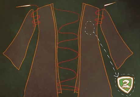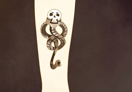 Wear a black cape. To make one, pick up a big swath of black fabric (satin is best) and make sure it reaches your ankles. Cut holes for your arms to go through and add sleeves that droop at the wrists. Cut off any excess fabric and sew it on to create a hood. Finally, add some silver embellishments to make it shine. Add a silver clasp at the neck to hold it together. If you want, you can also add a Slytherin crest, as that was Narcissa's house. You can also purchase a ready-made cape or ask to borrow one.