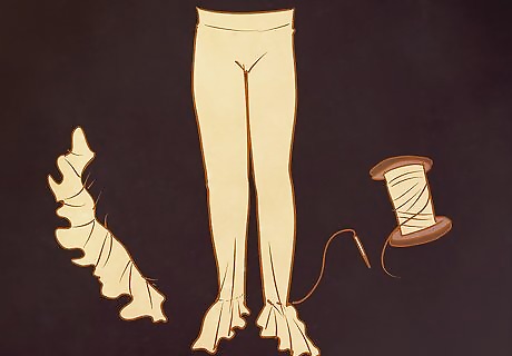 Find a pair of light brown leggings. They should be tight, but not too tight. Sew the ruffles on the ankles and a little bit up the calves. The ruffles on the calves should make a curved upside down V when the pant legs are pressed together.