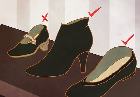 Find a pair of black shoes. These should be plain, and preferably flats, although heels will work as well. If you choose heels, make sure you know how to walk in them a few day before the event you're dressing up at without tripping on the robe.