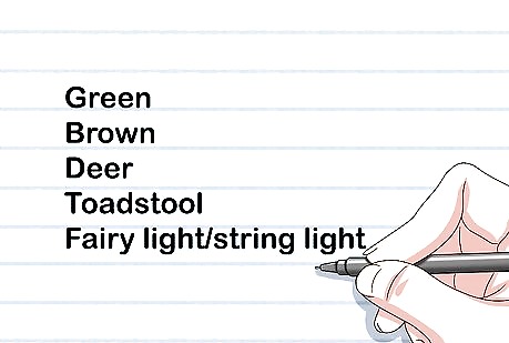 Write down some words. Start with five words that describe your idea or concept. For example, if you want an woodland-themed party, your words might be: green, brown, deer, toadstool, fairy light/string light.