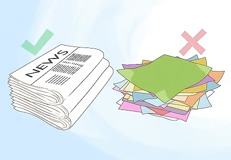 Use newspapers as a barrier between the ground and your garden. Avoid glossy or colored print or advertising brochures, and opt for basic newsprint instead. You will need quite a bit of newspaper, so it is helpful to save newspapers for a few weeks.