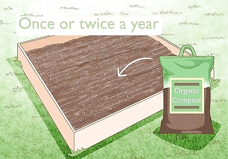 Add compost once or twice a year to keep your garden healthy. You can make compost out of things like yard clippings, table scraps, eggshells, and leaves. Compost at the beginning of spring and at the beginning of autumn if you plan to do it twice a year.