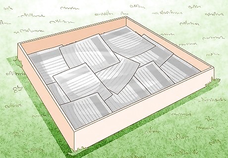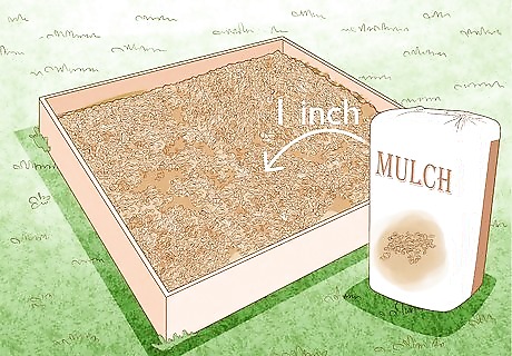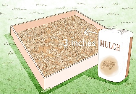 Cover the area with 3 inches (7.6 cm) of mulch. You can also use old hay or collect leaves in autumn to use as mulch. The hay or leaves will gradually break down and nourish the soil underneath, and while they do, they will keep moisture in and weeds in check. You can also purchase mulch from your local nursery. Another option for the bottom layer is plain, brown cardboard.