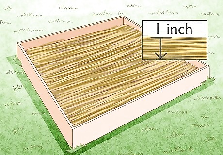 Add a layer of hay, straw, or grass clippings until you can't see the newspaper. Lucerne hay is ideal to use for this layer. It can be purchased from horse stables or your local gardening store. If you can’t find Lucerne hay, you can also use straw mixed with grass clippings.